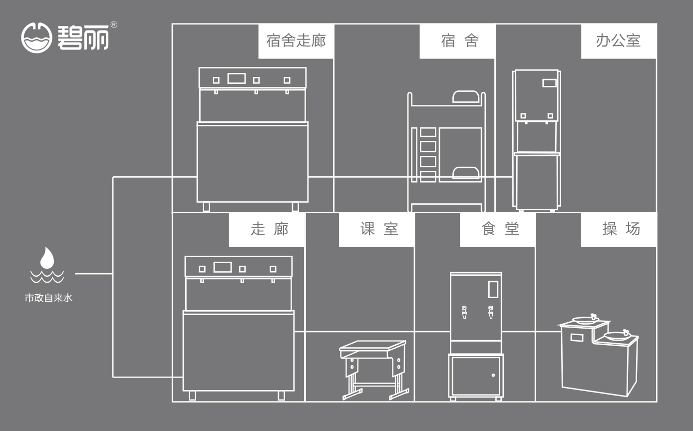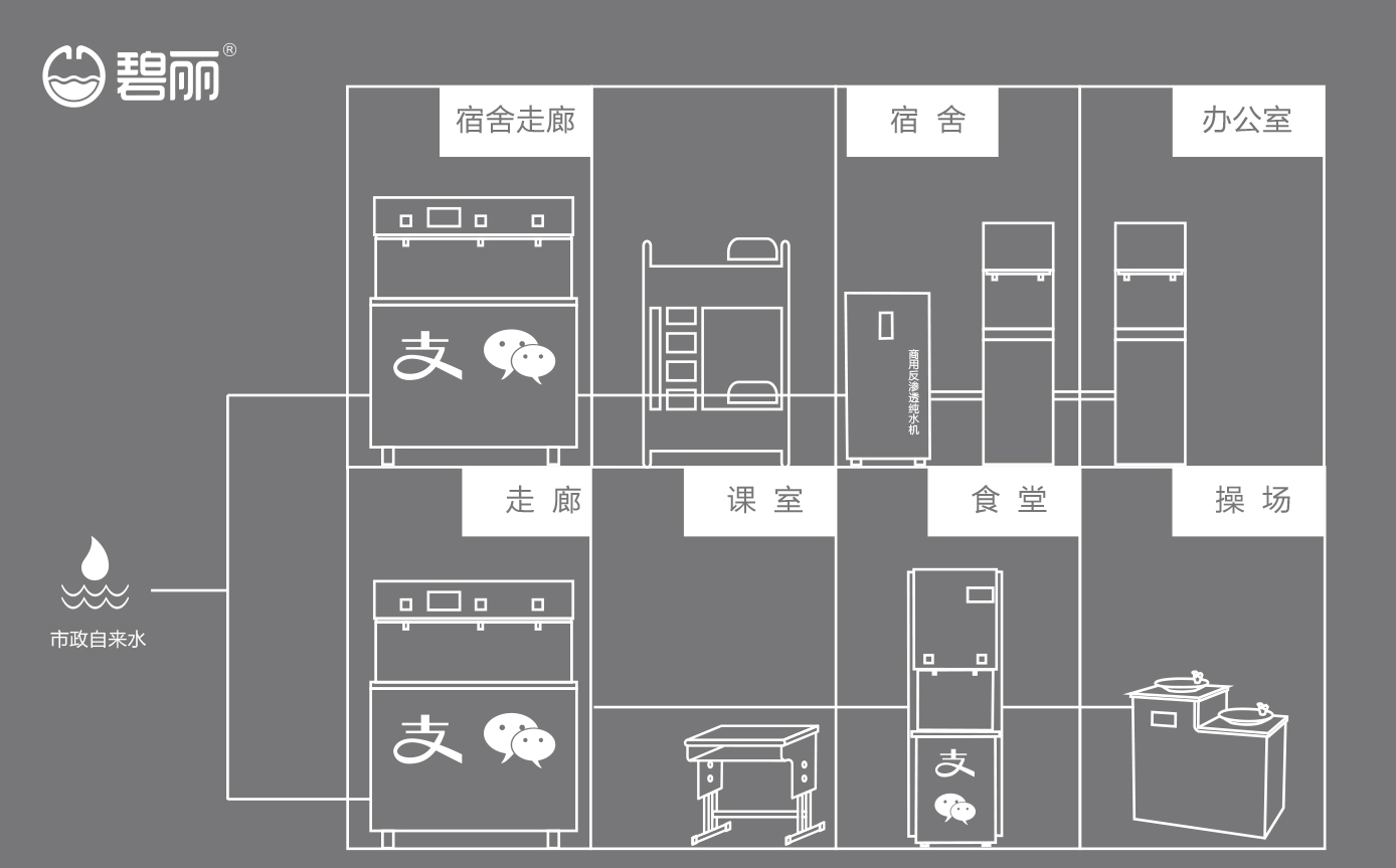 不同的飲水點(diǎn)可根據(jù)實(shí)際使用情況,安裝管線機(jī)或飲水設(shè)備或開水器,使用戶能喝上開水、溫開水、純凈水等,來滿足不同場(chǎng)景的飲水需求;