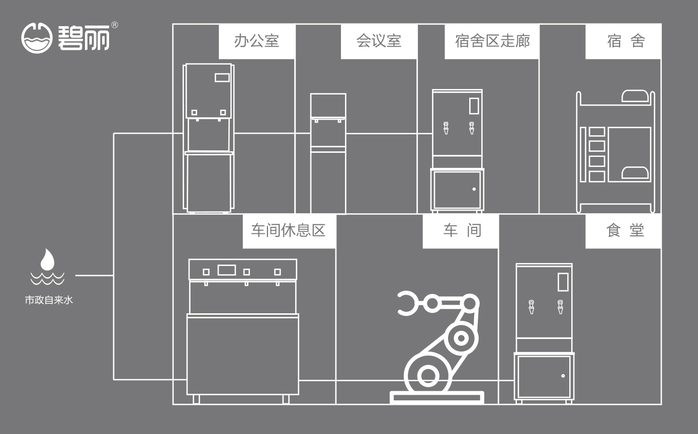 不同的飲水點(diǎn)可根據(jù)實(shí)際使用情況,安裝管線機(jī)或飲水設(shè)備或開水器,使用戶能喝上開水、溫開水、純凈水等,來滿足不同場景的飲水需求;